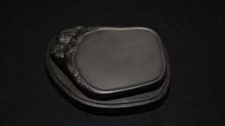古硯 澄泥硯 焼き物と思います。?デザインはよくあるパターンです。摩墨は芳しくないです。